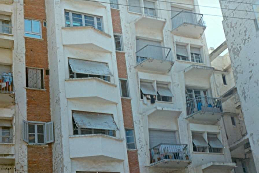 Видът и на блока и на лъскавата някога монопри е жалък. От 60те години сградата не е пребоядисвана. Ние живеехме в „четирите прозореца”от дясно на ляво – с опънатото пране под щората – виж другата страница.