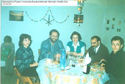 На гости са ни двамата архитекти, Мелуа и Каис, Маргото и Румен, както и сестра ми. На масата има голяма бутилка „Тракия”, която сестра ми е донесла от България.