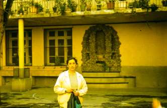 На снимката тя е в двора на лицея. В каменната ниша зад нея някога е имало статуя на Богородица.