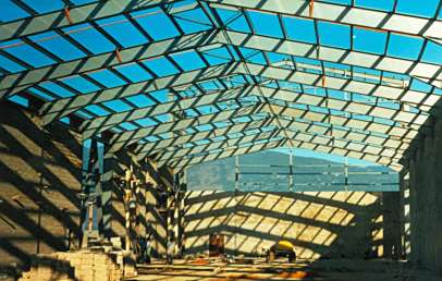 Набързичко приключих с проектити на халетата. Целта е да се започне изпълнението на фундаментите. Халетата не представляват проблем – пълностенни метални рамки с отвор 24 и 15м високи 6м. Фундаментите тук не са проблем, товарите са малки – халетата са леки. Чертежите стават бързо и започва изпълнението.