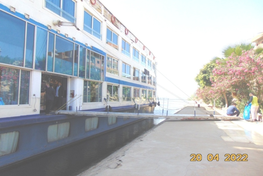 Няколко думи и за самия кораб. Има пет палуби – най-долната е ресторанта и машинното, отгоре лоби бара, рецепцията, каюти и капитанския мостик, после две палуби с каюти и най отгоре голяма открита палуба с малък басейн пълан с очевидно много мръсна вода. Към 14ч. отплувахме нагаре по течението на Нил към следващия ни обект.