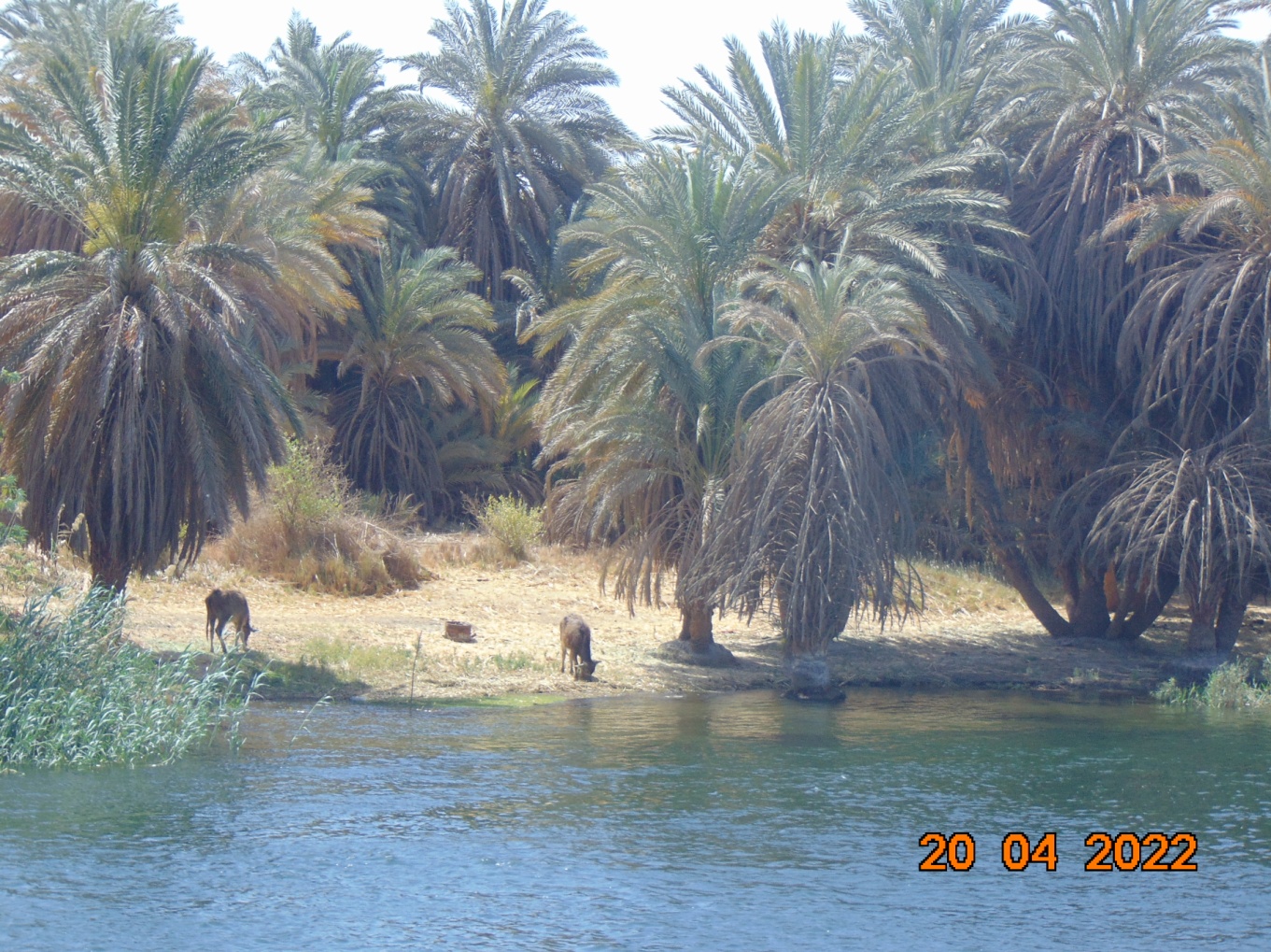 18 април – понеделник. Ставаме в в 4ч. В 4.45 сме пред автобуса. Багажът ни пак е пренесен от любезно пиколо. В пет сме на път. Преминаваме 300км. през западната египетска пустиня, за нас нищо особено. По пътя спираме за почивка на невзрачно място, на кето обаче има много чисти тоалетни – цена 5 египетски паунда –около 30 ст. После навлизаме в зелената зона на Нил, движим се покрай канали на по пет хиляди години.
