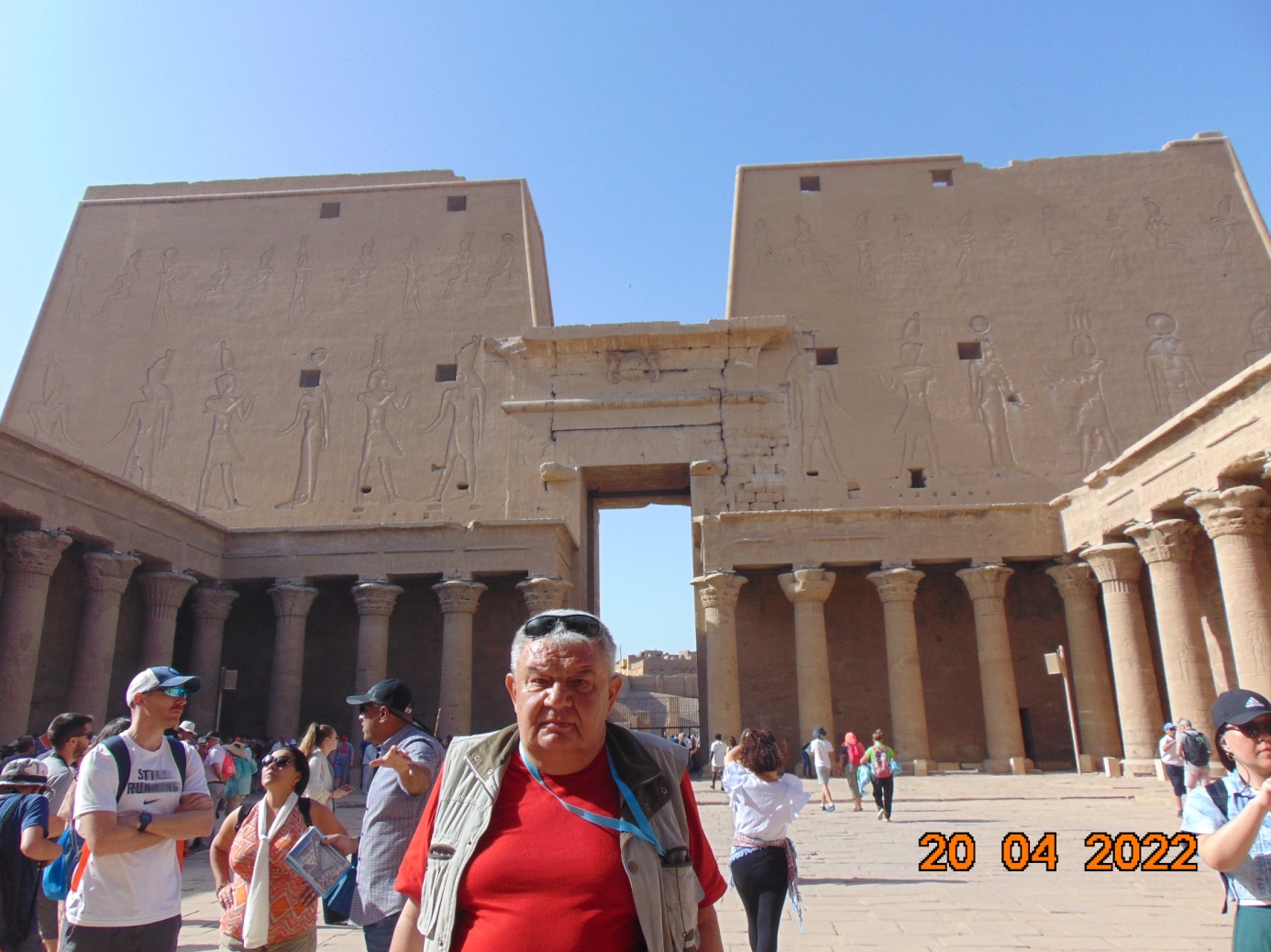 20 април – сряда. Вече сме доплавали до Едфу и ще посетим храмът на Хор. Едфу се намира на 60 км северно от Асуан. Той е бил вторият Ном /вторият по значение окръг/ на Горен Египет и център на култа към триадата Богове. В стари гръцки документи, Едфу е известен като “Apollopolis Magna”, защото гърците са идентифицирали Хор с техния бог Аполон.