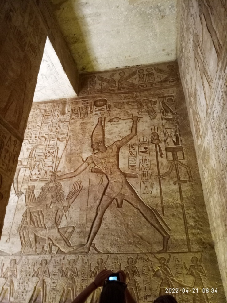 В храма на Рамзес ни посрещат в шпалир пак негови огромни статуи.Всички стени и тавани са запълнени с релефни изображения описващи подвизите на фараона. Въпреки, че са правени преди повече от двадесет века те са невероятно реалистични, даже ясно показващи движение.