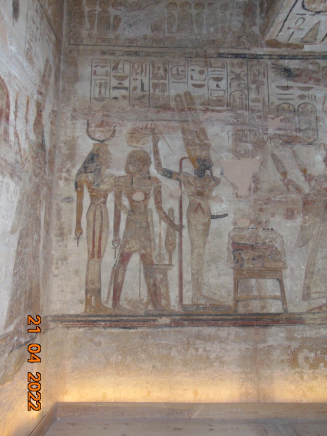 Навлизайки навътре в храма светлината намалява, има някакво деликатно осветление,което прави стенописите още по вълнуващи. Накрая стигаме до самото светилище. Статуята на Амон Ра естествено я няма. Както повечето статуи на богове на тези места тя е била от злато, с височина около половин метър. Следователно много удобна за употреба на други места. Няма нито една запазена такава статуя.