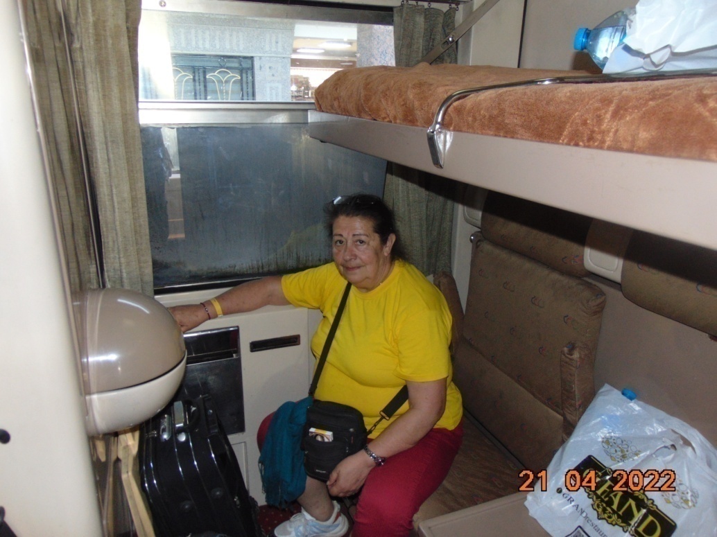Ще пътувама с влак от Асуан до Кайро около 900км. Ще пътуваме около 15ч. в спален вагон. Бяхме подготвени за мизерни условия, но в БДЖ не са кой знае колко различни. Прозорците не бяха мити от пускатето на влака на релси и до една пета бяха пълни с пустинен прах. Иначе беше чистичко. Купетата са теснички, но пък са само за двама души. Донесоха ни и топла вечеря, имаше и кола за да разредим последните количества водка. Тамарка отвися на прозореца на коридора, почти чист защото явно са го сменяли. Имаше какво да се гледа, красиви пейзажи, неугледни селища, различни хора.