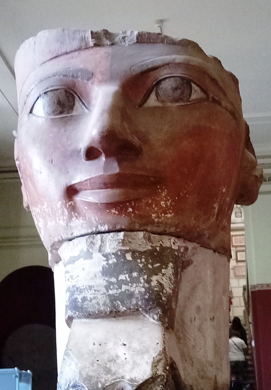 Интересна беше и главата на великта царица Хатшепсут, една от малкото запазени. Следващите фараони не я обичат много и полагат усилия да заличат образа й.