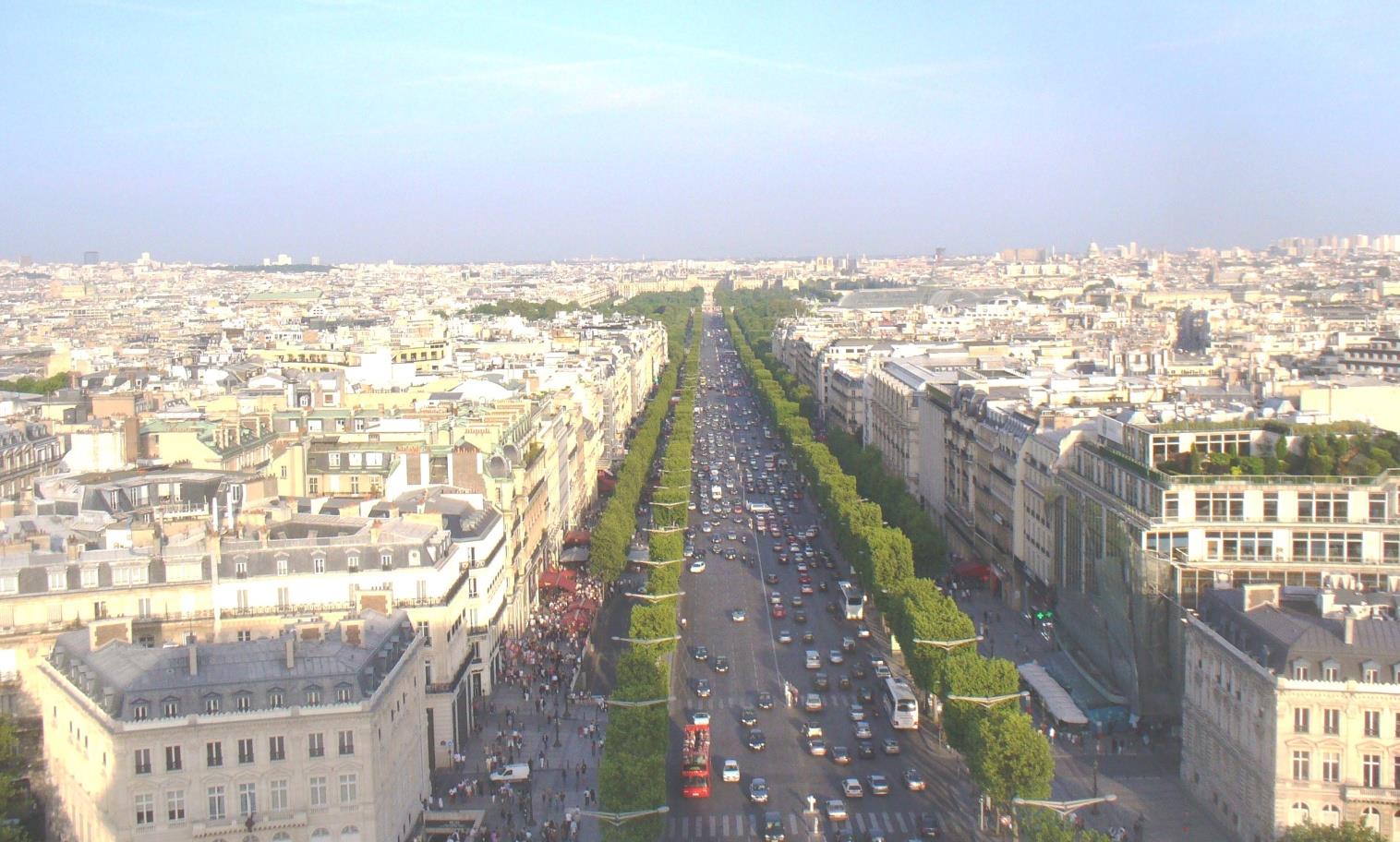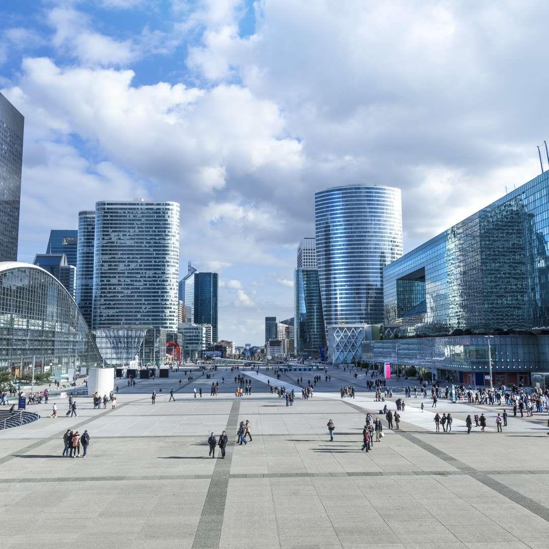 Зад гърба ни е Арк де ла Дефанс. Огромна 35 етажна офис сграда и тя в оста на далечната триумфална арка.