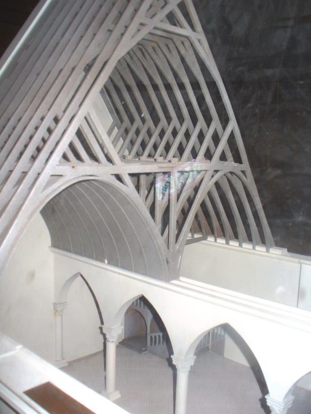 Кралският стол не е оригинален и туристите могат да сядат на него. Залата има много интересна дървена покривна конструкция показана на много хубав макет.