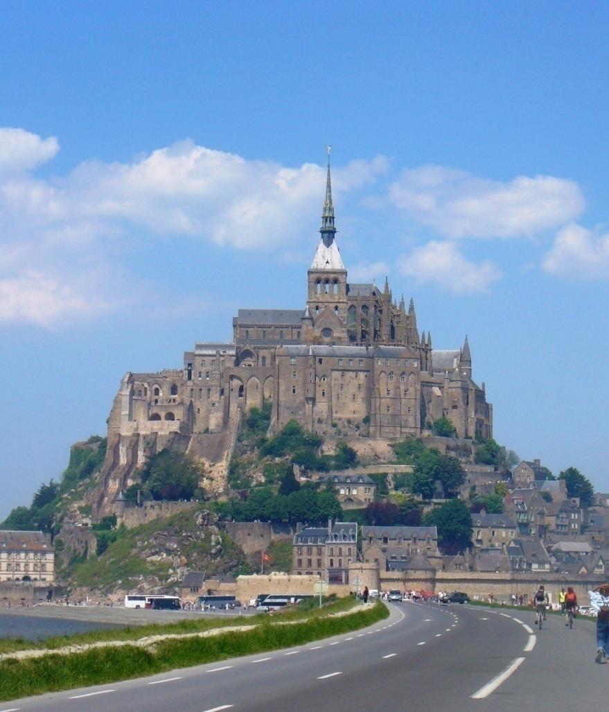 На първия етаж има голяма дневна, кухня и спалня, на вторият – две големи спални, естествено има килер и бани и тоалетни на всеки етаж. Има и почти два декара двор – идеално поддържана ливада.Днес се отправяме към Мон Сен Мишел. Това е скалист приливен остров. Това означава, че при прилив става остров, а при отлив – полуостров. Приливите и отливите тук са едни от най- големите в света. Океанът се отдръпва на километри и се връща със скорост около 30 км/ч. това го прави идеална крепост, защото при обсада нападателите щом достигнат крепостта трябва да започват да се връщат. Поради приливите не може да се откъсне островът от доставка на храни.