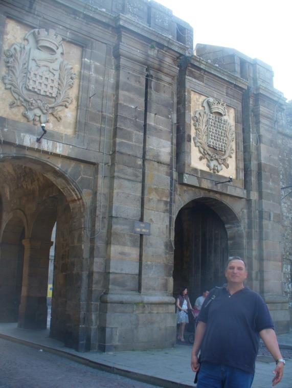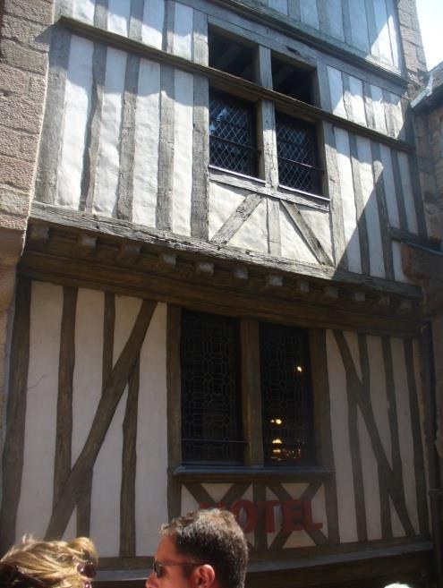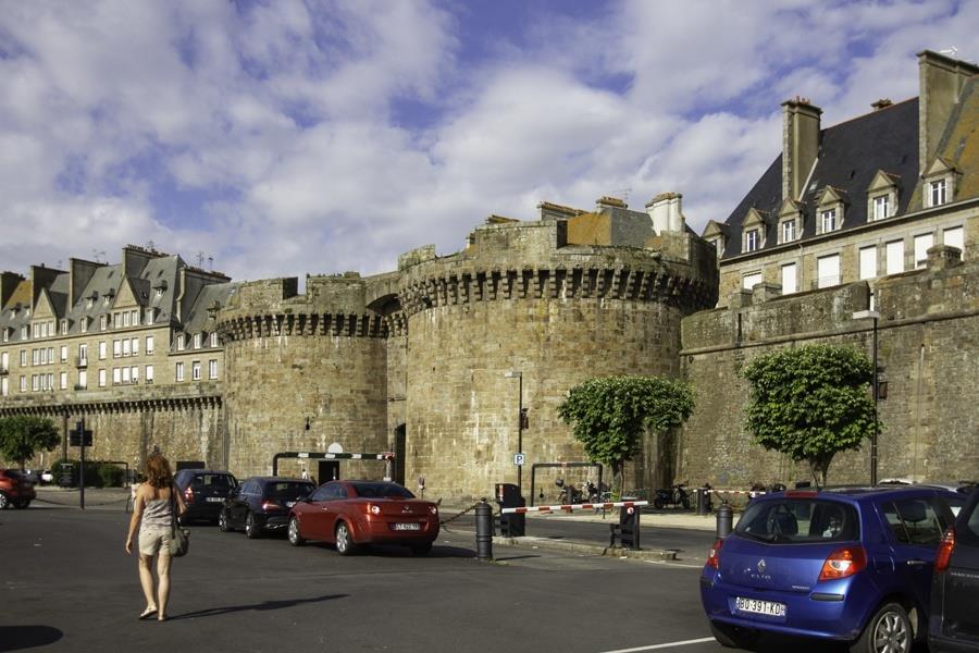Паркираме някъде пред стената и влизаме през една от портите. Над дясната врата е гербът на Бретан с хермелините. Улиците не са широки, но позволяват автомобилно движение, задръстено като в центъра на София.