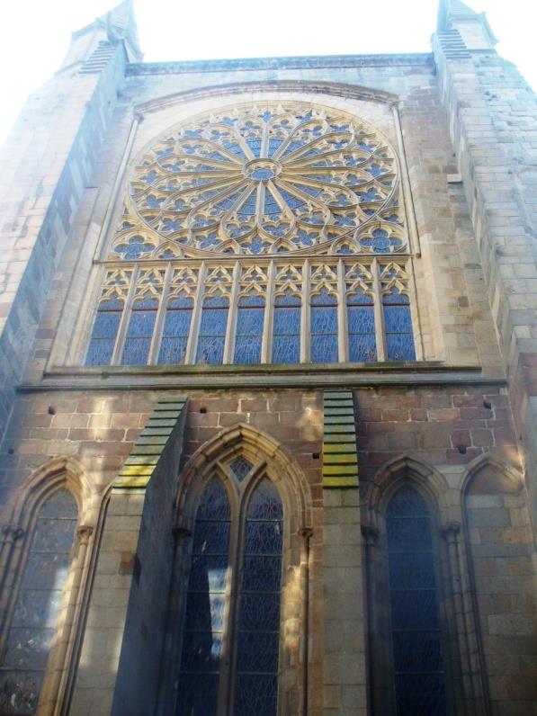 Двете ѝ кули – едната, 105-метрова обикновена пирамида, датираща от 1140-те г., а другата 115-метрова островърха кула от 16 век, построена над по-стара кула и пример за стила Пламтяща готика.