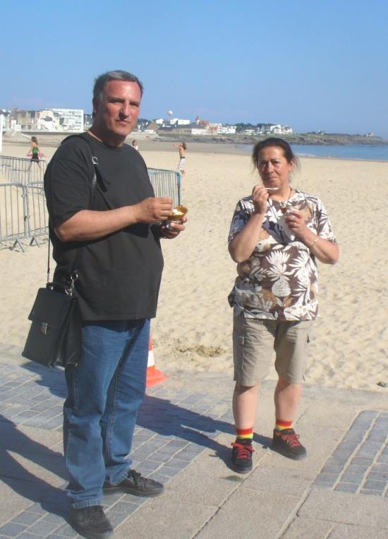 Тамарка и Адашът си вземат по един голям сладолед, после сядаме да изпием по кафе и биричка в едно бистро на плажа.