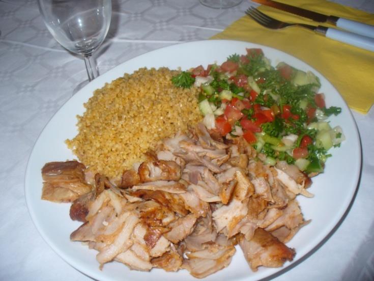 Ястието е наистина забележително, месото е гарнирано със свежа салата и специално приготвена леща.