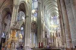 Впоследствие е издигнат огромен шпил с височина повече от 150 м,. Но едва завършена, стрелата се срутва през 1573 г. Нефът (корабът) никога не е бил завършен поради липса на средства. Църквата е дълга 72,50 м с изключителна височина на свода от близо 48,50 м, най-високата в готическата архитектура в Европа. Дори недовършена, сградата остава едно от ценните места на религиозното наследство.