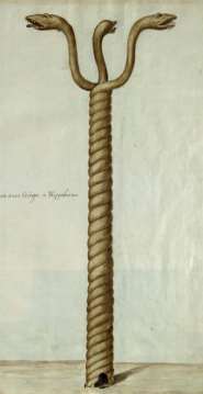 Змийската колона пък е оцелялата част от жертвен триножник, излят от оръжията на персите, загинали в битката при Платея (479 г. пр.н.е.) по време на гръко-персийските войни. Първоначално се е намирал в Делфи, но по-късно е транспортиран от император Константин до новата столица на Римската империя . Първоначално 8-метровата колона, образувана от сплетените змийски тела, е била увенчана с трите им глави, поддържащи златен триножник за жертвоприношения. През 1700 г. колоната е частично разрушена. Част от една от змийските глави днес се намира в Истанбулския археологически музей.