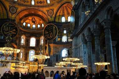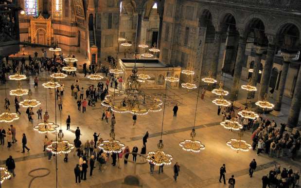 Е, бързо се осъзнаваш, няма го олтарът, а големите пана с текстове от корана ти напомнят, че тук, след императорите са стояли османските султани… В тяхната роля нещо не ми се влиза.