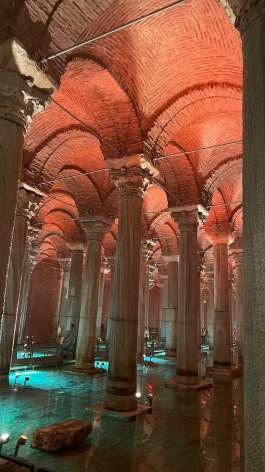 Дивиме се на тази разкошотия около час и тръгваме към следващата точка от програмата- Цистерната. Бяха ми казали,че обезателно трябва да я видим. Бях малко скептичен, какво толкова има да се гледа пък на една цистерна. Входът е незначителна сградичка, по скоро барака. Плащаме вход и по стълба се спускаме надолу и и изведнъж попадаме в ново великолепие на строителния гений.