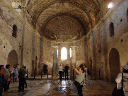 Продължаваме към църквата на Св.Никола. Тя е почти в центъра на гр.Дерме – древната Мира. Построена е върху основите на древен храм на богинята Артемида. По-късно на мястото е вдигната християнска църква, където Свети Никола служи като епископ и по-късно е погребан. През 1099г. Мощите му са откраднати от италиански търговци и са отнесени в Бари, където са и до днес. Църквата е многократно разрушавана и това което се вижда сега е възстановено по поръчка на руския император Николай първи. Е интересна сграда,но едва ли щеше да бъде включена в програмата ако тук не беше служил светецът. Все пак определено заслужава да се види.