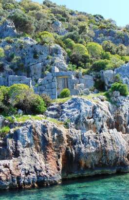 Пътувахме за островчето Кекова. По пътя се наслаждавахме на ликииското крайбрежие, приличащо доста на това на Камен бряг стръмни скали с пещери. Тук някъде пирати пленили младият Цезар. Поискали откуп, който той оценил като много нисък. Освен това им обещал,че ще се върне и ще ги унищожи всички. Е, Цезар е държал на думата си. Минаваме покрай една пещера, пиратска база, в нея се събирали до девет кораба.