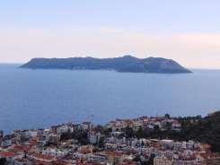 Наближаваме град Fethie. От височината над него се вижда остров Родос.