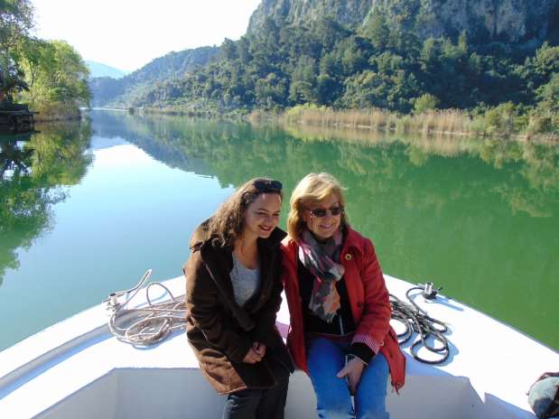 Минаваме покрай комплекс от гробници, като тези в Мира и непрекъснато се оглеждаме за поява на костенурките Карета Карета. Тук било главното им обиталище. Те били големи, с дължина до метър и често можели да бъдат видени в реката. Ние имаме късмет – двойка от тези достолепни животни се любеше на повърхността и можахме да се приближим до тях. Е, снимката не стана, но гледката беше интересна.