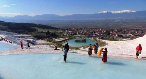 След обяда стигаме до градчето Памуккале.То е малък, но известен турски курортен град, а също и уникален природен феномен.