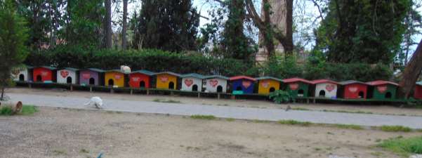 После имаме два часа за да погледнем града. На паркинга, където ни оставят има очарователно котешко общежитие. Даже името на всеки обитател е написано на къщичката му.