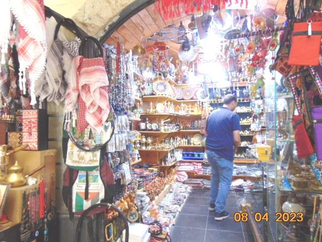 На входа на древния град има базар, с тоалетна. Решили сме да купим гандура на Тамарка. За мъже има, за жени не. Гледаме и за някоя фанелка с нещо от Йордания. Харесвам само една,черна с орел отпред. Цената от 45 долара набързо ме отказва. Това все пак не е Версаче. Използваме момента да изпием по кафе – пак гадно и скъпо.
