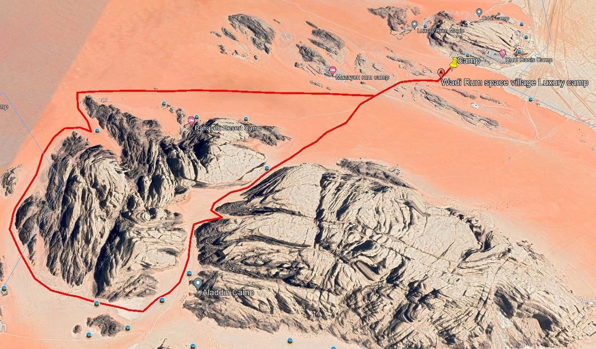 Дължината на маршрута, от хазнето, в едната посока е почти два километра. За това са камилите пред хазнето. Срещу15 долара те закарват до или те вземат от края на маршрута.