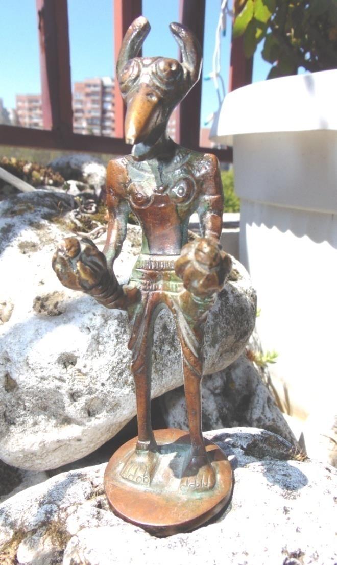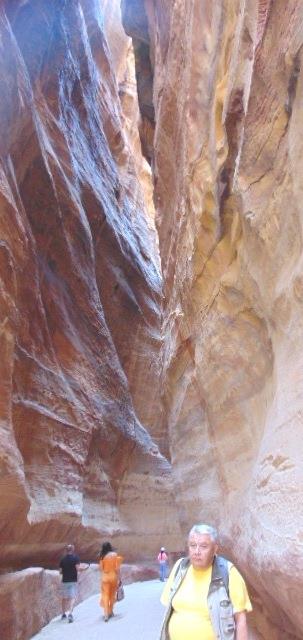 По пътя купуваме една малка каменна костенурка за Надето, хубаво е като знаеш какво събира някой. На идване съм си харесал едни бронзови статуйки от сергиите. Спирам на една и питам за цената – 60 долара. В моя стил на пазаруване казвам 10, продавачът веднага сваля на 30, аз си оставам на десет, не ще. Тръгвам си, не ме гони, явно десет е малко. Продължаваме напред и на едно по-следваща сергия спираме. Тамарка се отдалечава защото я било много срам когато се пазаря. Започвам пак с въпроса, колко спрува. Отговор – 60, този път казвам 15. Пазарим се с едно малко 12-13 годишно, много симпатично момче. То веднага сваля на 30, после на 25, аз си държа на 15. Тръгвам си, момчето тича до един възрастен мъж,явно собственика, говори си нещо с него и ме настига. Предлага 20, аз си държа на моето. Момчето се съгласява. Сдобивам се с нещо което ми е харесало, въпреки,че може да е китайско. Не знам обаче какво представлява бронзовата фигурка. Нашата екскурзоводка счита,че е египетска,което още веднъж показва слабите й познания по история. Все едно, с размерите на мойта войници е и ще бъде малък спомен от Петра.