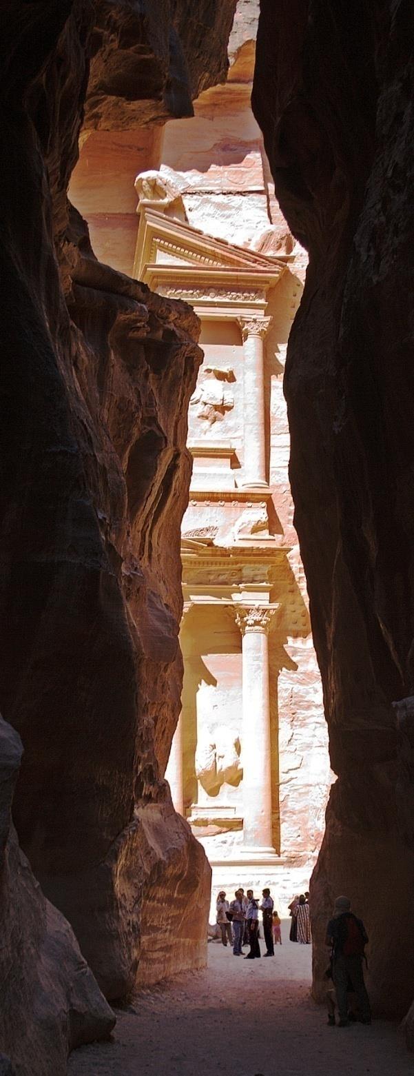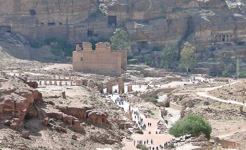 Тя се вижда добре на снимката – минава през голяма порта. Вляво от нея е големият храм, точно пред нея Каср ал Бинт, а в зеленината на дъното има приличен ресторант с тоалетни. Оттам се продължава към осемстотинте стъпала водещи до гробницата и по-късно църквата Деир, за която писах по-горе.