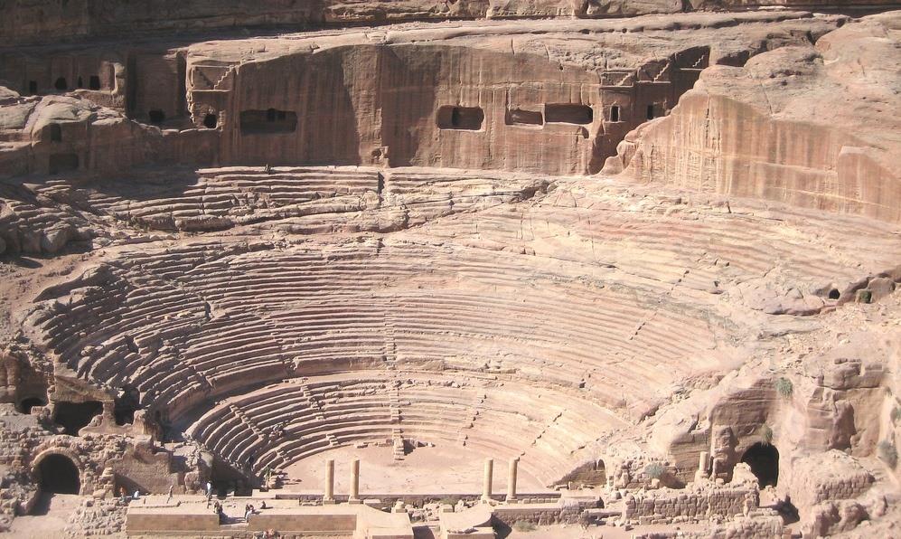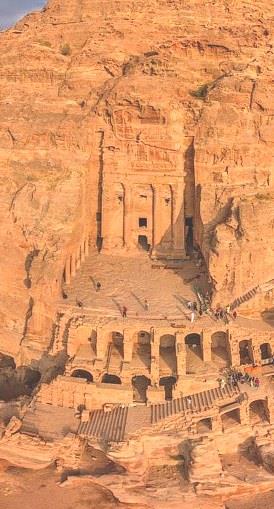 Точно пред нас е театърът, изсчен изцяло в скалата. Той е строен през първи век и е с капацитет 4 000 зрители, което предполага население от около 20 000 души през този период.
