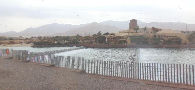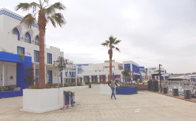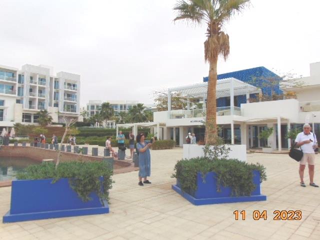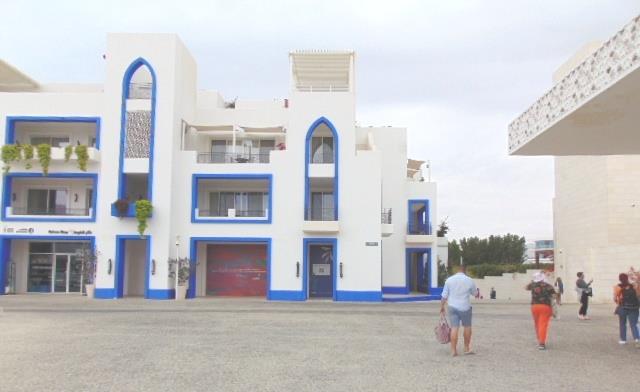 Навлизаме в нещо като затворен комплекс. Финансиран от саудитци. Той е на нещо като остров, а около него морската вода се върти с огромни помпи и даже има изкуствени водопади / виждат се като тънки бели линии на следващата снимка/. Огромни плажове в околовръст. Оказва се,че един малък, 90кв.м. апартамент струва само 200 000 евра. Не могат да ни кажат обче колко е поддръжката на година.