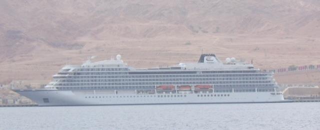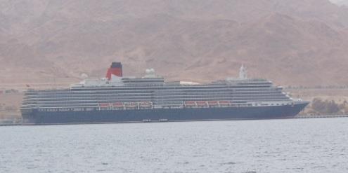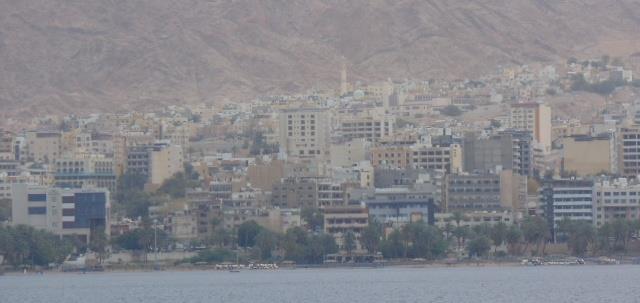 Имаме поглед към Акаба, и към два големи пътнически кораба, които са акостирали на пристанището.