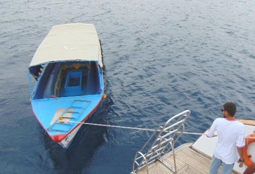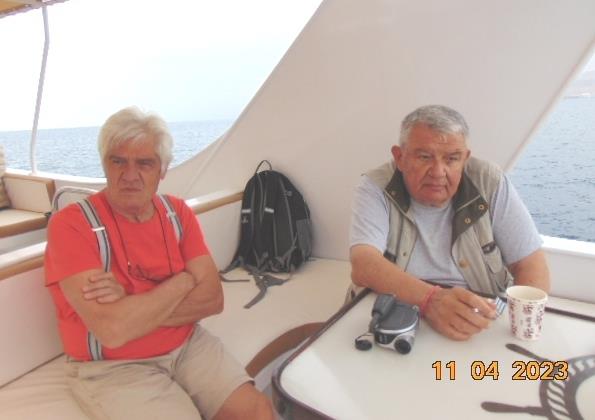 Аз присядам на една от колоните за вързване на яхтите. Все още не ни беше дошло корабчето. То скоро идва и се товарим на него. Яхтата се казва El Rayes, което в превод от арабски означава гръм. Собственик и капитан е една едра и здрава арабка, на която всички безпрекословно се подчиняват, само след половин дума. После нека да разправят за положението на жените в арабския свят. Както се полага се събуваме и босички се качваме на горната палуба.