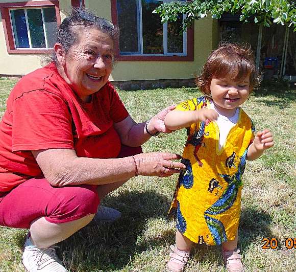 През 2022 година, в средата на май пристигнахме в село, аз, Тамарки – 2 Станислава и Иван. По пътя спяхме в Омуртяг. вече не можех да крама 535 км. Дворът беше изкосен, миналата година се разбрахме с Жоро Георгиев да го поддържа. Малката Тами беше много доволна да тича из двора – нали наскоро беше проходила. През март бяхме в Египет и й донесохме роклята, с която е на снимката.