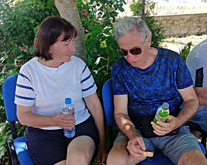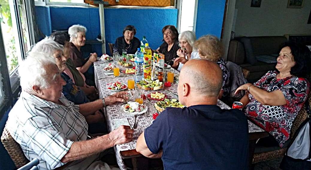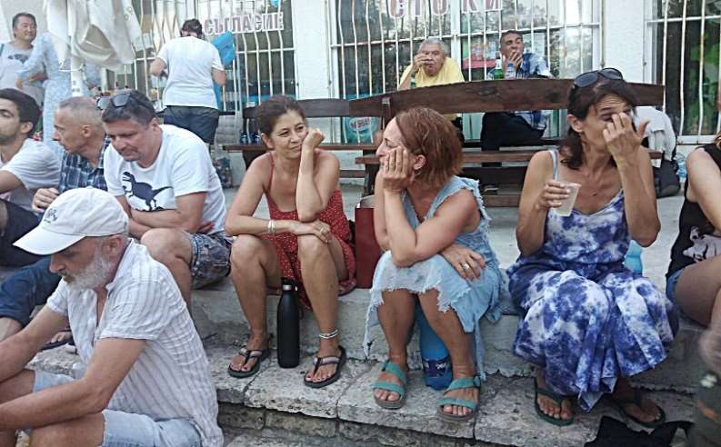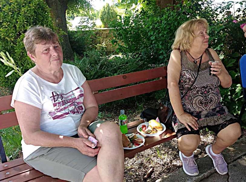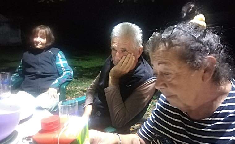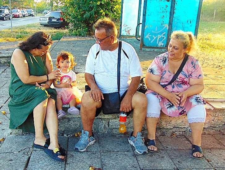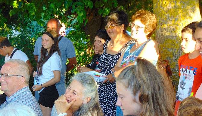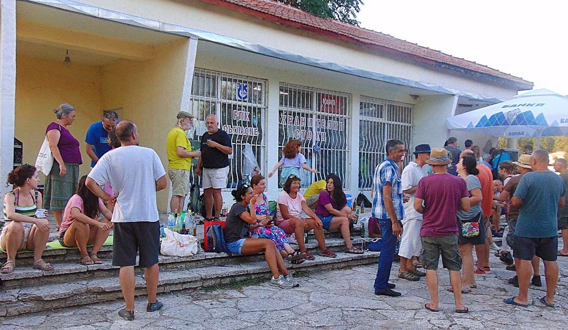 Времето беше малко топло и хората пак търсеха сянка. Имаше и много непознати, на снимката например познавам Стойка и зад нея се подава Вълкана.