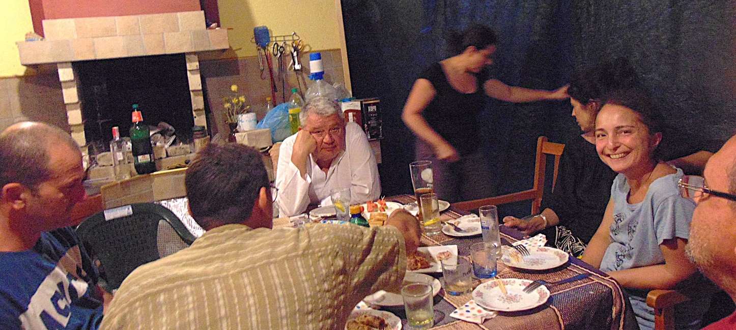 Както се следва, на 15 юли, облечен в арабска гандура отбелязах рождения си ден. Отляво, надясно: Матей, аз, Венета, Ралица, Ася, Росен, а Ясен е в гръб. Аз бях направил коктейл от раци, а Тамарка – миди със сметана