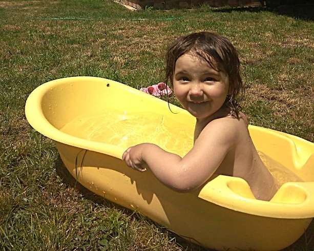 Все още беше хладно за плаж, но след обеда, преди съня, имаше баня в коритцето, което някой ни беше подарил.