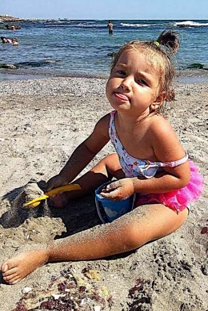 След това се отива на плаж – на Малкото море. Там основни играчи са Тамарка и Иван, които играят ролята на разводачи във водата. Е, предпочитан e тати, защото може и да я носи и превърта през глава.