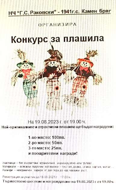 През юли участвахме в годишното събрание на читалището. Нали отдавна бяхме станали негови членове. Там се обсъждаше какво интересно мероприятие да се направи през сезона. Нямаше магарета за „Магариада“…. Добринка предложи конкурс за плашила. Не ми се виждаше много интересно, но какво пък, по-добре от нищо. И Добринка, Ванчето, Юрий се заеха с организацията. Даже направиха плакат – покана.