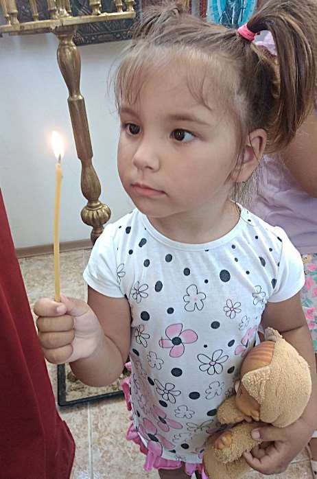 И така до Джулая, който беше първият за малката. От снимката се вижда,че не е особено впечатлена, а по скоро е недоволна от това,че я събудихме толкова рано.