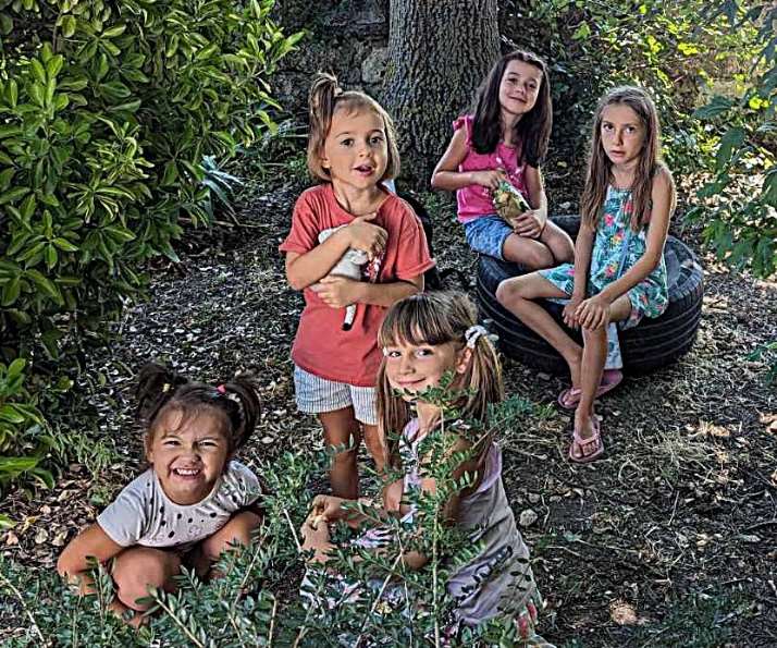Ванчето очевидно се справя добре с деца, защото всички я обичат. На долната снимка явно са се маскирали.