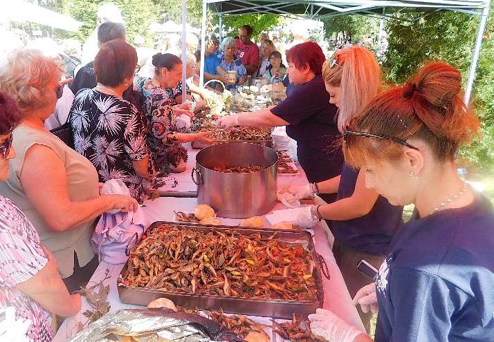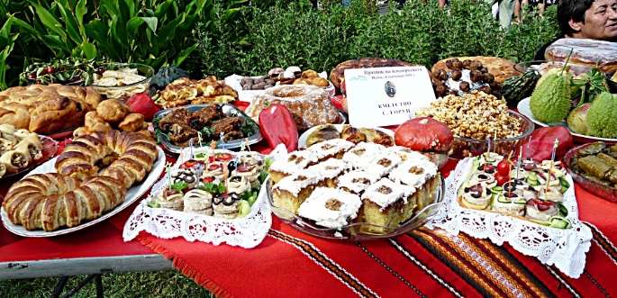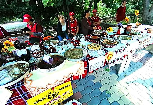 Знаехме,че идваме на празник на гърнетата и се готвехме да си купим някаква керамика. Оказа се,че гърнета имаше, но бяха пълни с вкуснотии. От супички, през сърмички, чушки, мусака, печено месо, разна скара, до , баклавички, тулумбички и разни местни сладки неща. Всъщност празникът е на местната кулинария. Разбрахме,че повечето неща са правени късно вчера, дори през нощта. На масите под всяка шатра беше поставено и името на участника – на снимката – читалището на село Ефр. Бакалово