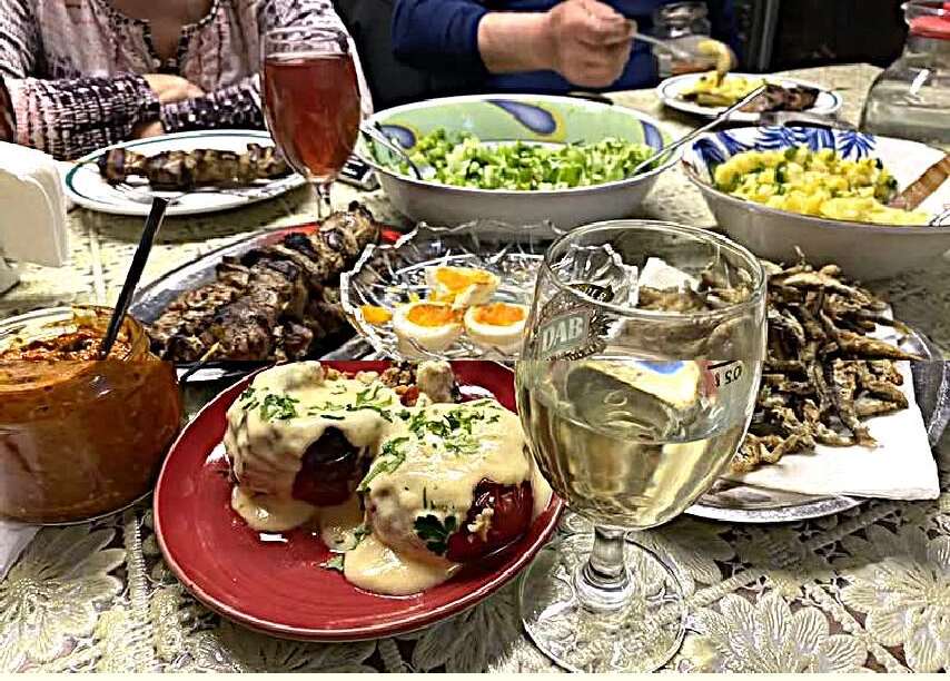 В края на месеца на гости ни дойде познатата ви вече Мариана Ненова – Нана и нейният приятел Тошо, който идваше тук за първи път. Пак доставихме морска котка и направих моята рибена чорба, а другото месо изпържихме…. с ракия, бяло вино и бира.