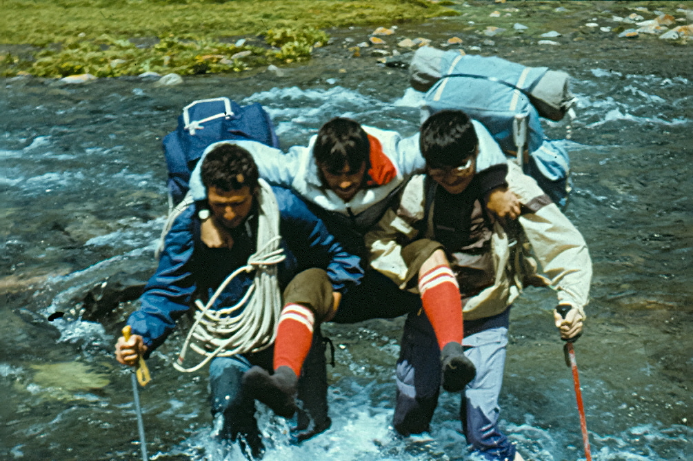 Към 20 ч, след като сме слезли в долината на река Чонкинмин и сме минали поне през десет удобни места за лагер достигаме до буен приток на споменатата река, чието преминаване е свързано с намокряне. Като казвам достигаме имам предвид последната част от групата, другите са неопределено напред. Преценявам, че да се мокриш по това време (почти мръкнало), не е здравословно, виждам, че Тамарка е сдала багажа и, най - много да се изтърколи във водата при преминаването на потока и решавам да си опъваме палатката. Е..л съм му майката на Сагандик, ако беше наоколо щях да го помеля от бой. Абсолютно безотговорна личност. Адашът и Краси все пак решават да продължат и поне да информират глупака, че ние ще нощуваме тук.