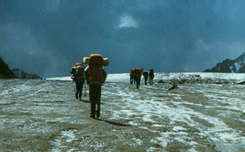 Към седем тръгваме нагоре, в дванадесет стигаме езика на ледника и спираме за подготовка и почивка. Гледката към долината е фантастична, а изпод езика извира една река, като Искър, само, че чиста. Пъъълен разкош.