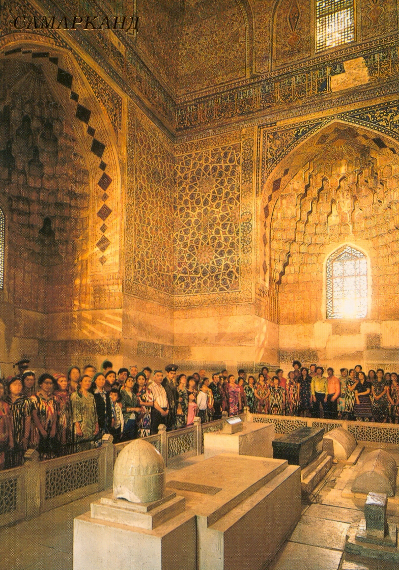 Най - напред отиваме в Интурист да се измием. Следва посещение на гроба на Тамерлан, великолепно запазена и от вън и от вътре сграда. Тук е погребан и прочутия астроном, философ, поет и математик Улугбек, който е внук на Тамерлан и е убит от заговорници. В гробницата е просторно, красиво и прохладно. Почваме да се чувстваме като бели хора.