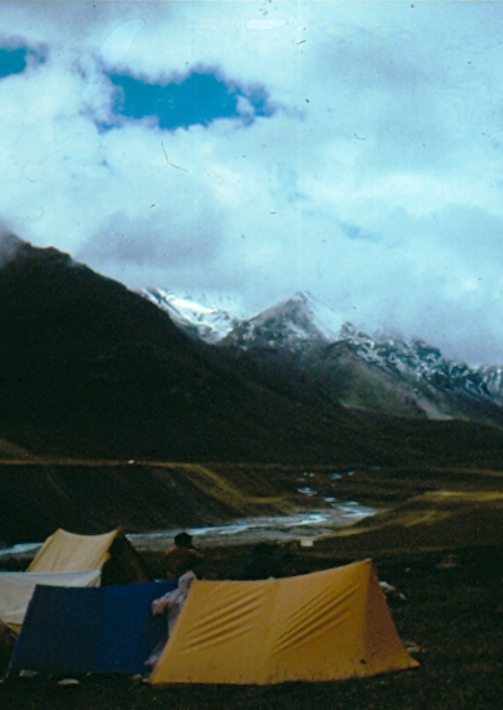 Към 20 ч, след като сме слезли в долината на река Чонкинмин и сме минали поне през десет удобни места за лагер достигаме до буен приток на споменатата река, чието преминаване е свързано с намокряне. Като казвам достигаме имам предвид последната част от групата, другите са неопределено напред. Преценявам, че да се мокриш по това време (почти мръкнало), не е здравословно, виждам, че Тамарка е сдала багажа и, най - много да се изтърколи във водата при преминаването на потока и решавам да си опъваме палатката. Е..л съм му майката на Сагандик, ако беше наоколо щях да го помеля от бой. Абсолютно безотговорна личност. Адашът и Краси все пак решават да продължат и поне да информират глупака, че ние ще нощуваме тук.